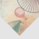 Schematic style drawings including turn of the century bicycle. Other designs are a compass type circle, a small red balloon and a blimp. There is also green and purple cursive script writing on the faded yellow aged background. Great for decoupage artwork, paper crafts, or gift wrapping.