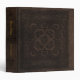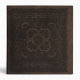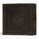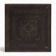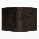 A case printed with the image of an old book cover made from brown tooled leather with ornamental patterns, and optional golden text.