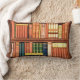 Custom throw lumbar pillow featuring a vintage illustration of colourful old books on antique wooden bookshelves. A fun accessory for the study or the room of an avid reader, teacher, librarian, writer, or any book lover.