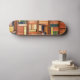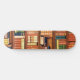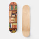Custom skateboard deck for bookworm nerds featuring a vintage illustration of colourful old books on antique wooden bookshelves. A fun deck for any book lover!
