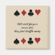This humourous magnet is for all card players. It would make a great inexpensive small gift or stocking stuffer for poker players, bridge , canasta or solitaire players. At the top and bottom is a row of card symbols; black spades, red diamonds, black clubs and red hearts. The text says "Old card players never die; they just shuffle away." You can change the text and/or the background colour if you want. See other magnets in my "Magnets" collection. See other small gifts in my "Small gifts and Stocking Stuffers" collection.