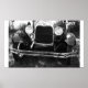 This restored vintage vehicle is a beauty! Everything from the flared fenders and the round headlights to the chrome bumper has been lovingly restored by an antique auto buff. Photograph taken at a classic car and truck show in black and white, cropped to focus only on the front end details.