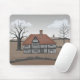 Colourful artwork of an old timber-framed farmhouse in the English countryside, with an old windmill in the background, and some crows who have come to visit. Perfect for anyone who loves folk art.