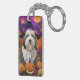Old English Sheepdog Halloween Witch Pumpkin Keychain