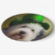 Old English Sheepdog in St. Patrick's Day Dress Paper Plate