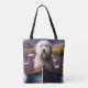 Old English Sheepdog on Paddle: A Scenic Adventure Tote Bag