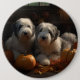 Old English Sheepdog Puppy Autumn Delight Pumpkin 6 Inch Round Button