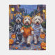Adorable Old English Sheepdogs dressed in playful Halloween costumes carry pumpkin buckets while trick-or-treating under the moonlit sky. This festive design highlights the breed’s shaggy coat, endearing eyes, and gentle personality, perfectly capturing the spooky yet fun atmosphere of Halloween night. A fluffy and heartwarming celebration for dog lovers and Halloween fans alike.