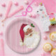 Old Fashioned Black Santa Cranberry Stripe Paper Plate