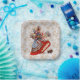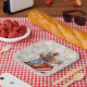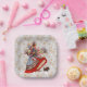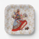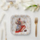 Paper plates with a 1900s Victorian, young couple heading home from a day of Christmas shopping. Walking through the snow with packages and Christmas wreath their little dog proceeds them to create a charming holiday image.