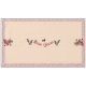 Old-Fashioned Christmas Shopping tablecloth with our Victorian couple and their little dog on either end; and the words, Merry Christmas in the centre. The border from the original card wraps the around the bottom of the tablecloth.