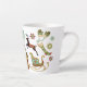 It's fun to celebrate an old fashioned Christmas, and this latte mug definitely has that theme. Beautiful vintage images of a reindeer, Santa Claus, a stocking, mittens, a sleigh, and star shaped ornate snowflakes are included in a pattern around the surface of the mug. Colours include teal, red, brown, and green, all on a white background. One side has dark red text that says "Merry Christmas". Festive, unique, and a wonderful holiday keepsake. *Clip art used in this design is copyrighted by Encore Software, Inc., which permits use to its licensors. All rights reserved.