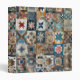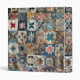 A colourful quilt with an assortment of patchwork patterns is displayed, each square featuring different designs and fabrics.