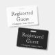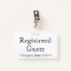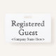 This old fashioned badge design features the message "Registered Guest", and a customizable company name or other custom message. A badge like this could perhaps be used to indicate that a person is a known and authorized guest or visitor at a business or workplace. [~Z0000307]