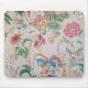 Floral, butterfly and bird pattern on mauve-pink wallpaper pattern