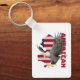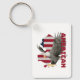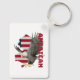 This keychain features a striking graphic design of an eagle in mid-flight with its wings spread wide, superimposed on the silhouette of a map outline of the United States. The background includes an American flag pattern with red and white stripes and a blue field with stars. The word “AMERICAN” is prominently displayed across the design in bold, capital letters. This design symbolizes American pride and identity, making it a perfect accessory for those who want to showcase their patriotism.