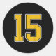 Old Gold Black White Sports Number 15 Jersey Unifo Classic Round Sticker