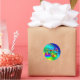 A graphic hippie peace sign design with the text "Old Hippies Never Die" by artist/designer Charmaine Paulson on a sticker.