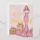 Old Hollywood Glam Woman Pink Glitter Effect Birthday Invitation with Gold Metallic Foil Accents.