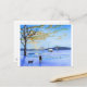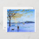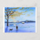 Old man and his dog winter snow painting postcard