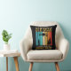 Funny and colourful drone pilot throw pillow features a silhouette drone, drone pilot, and trees on a colourful striped background with text that reads Never Underestimate an Old Man Who's Also a Drone Pilot!