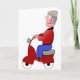 This design features an old man on a scooter. He is riding a little red scooter and looks rather amusing given his age. The old man looks to be enjoying his ride. This old man on a scooter design looks great on these greeting cards