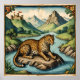 A leopard with an abstract representation, featuring muted gold and black accents, in a medieval-inspired design.