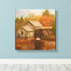This wrapped canvas features a vintage painting of an old New England mill in autumn.