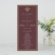 Set on a deep burgundy background with subtle gold accents and elegant serif typography, this wedding program presents each part of your ceremony with clarity, balance, and quiet sophistication.