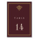 Set on a deep burgundy background with subtle gold accents and elegant serif typography, these table cards help guests find their seats while seamlessly complementing your overall wedding décor.
