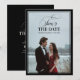This old money inspired black and ivory photo save the date showcases a full front photo layout framed by a bold black border for a refined and sophisticated presentation. The elegant script heading paired with classic serif typography creates a timeless black tie aesthetic rooted in heritage style.
