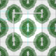 A pattern made up of many decoratively framed ones from the edge of a 1960s British pound note.
