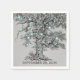 Special occasion paper napkins with bride's and groom's initials and wedding date. Beautiful rustic style design napkins with old oak tree and carved heart + teal lights.
