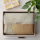 The juxtaposition of old paper with torn edges against a backdrop of cracked wall tissue paper adorned with intricate gold foil accents creates a luxurious aura of timeless elegance and decadence. The worn edges of the paper hint at a storied past, while the delicate gold foil details exude opulence and sophistication. This unique blend of textures and materials evokes a sense of richness and refinement, captivating the beholder with its tactile allure and visual splendour.