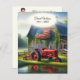 Old Red Tractor With American Flag