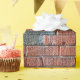 This design features a photo of an old reddish/brownish brick wall. Some of the depicted bricks appear to be worn or damaged, and some are covered in grime or dirt.