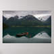 Poster print of a landscape with an old rowboat in a lake with the reflection of the mountains in the still water, Hjelle, Norway.
