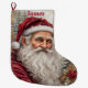 An old-fashioned, Victorian Santa Claus gives the viewer a wry smile on this vintage-looking Christmas stocking.