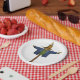 An old scarecrow with a couple of yellow birds on it. This design looks really effective on these Paper Plates