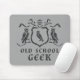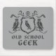 Illustration depicting a blazon supported by owls. There are the sayings: Old School Geek.