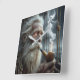 An old sailor with a long white beard and deep wrinkles gazes up at a woman's shape dancing from his smoking pipe