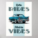 Bring the past into the present with this stylish graphic featuring a classic vintage car paired with the bold text 'Retro Rides, Modern Vibes.' Perfect for those who appreciate timeless design and a contemporary twist, this piece exudes charm and personality for any space or collection.