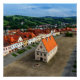 Aerial view of the old town square in Bardejov by day, Slovakia