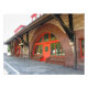 Track side of the Old Colony Train Station aka North Easton Station. Designed by noted American architect H. H. Richardson listed on the National Register of Historic Places. It is a relatively small station with a large passenger room at each end (one for women, the other for men) with ticket windows within. The extremely rare curved glass window was used by the station master to check on trains and track switches.