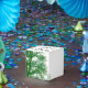 Image of an old tree with two coloured tones of green. This image contains printed all-over on 5 faces of the cube. Top contains an image with small transparent squares where text (Family reunion, family name and date) is printed for customizing.