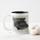 Harken back to the pre-digital age with this playful illustration of an old Corona typewriter superimposed over the "quick brown fox..." pangram rendered in hand-drawn text. Great mug for any writer or editor, or for anyone who likes vintage machines.