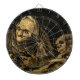 This design features a painting by the Spanish artist Francisco Goya (1746–1828). It shows an elderly woman (sometimes described as a witch) eating soup from a bowl with a spoon. Next to her is a skeleton, symbolizing the inevitability of death and mortality. The artist, Francisco Goya, was experiencing a period of depression and disillusionment when he painted this artwork. It was originally painted as a mural on the wall of the Quinta del Sordo [Villa of the Deaf]. There was another accompanying work featuring an old man with a skeleton. This work is one of the Black Paintings that were completed towards the end of Goya's life and depict intense, bleak and haunting themes.