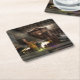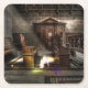 Old Wooden Church Bench with Kneeler Square Paper Coaster