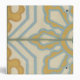 A Chariklia Zarris creation, this old world print offers a decorative tile pattern with blue and gold on a beige background. Would make a great gift for fans of flowers and pastel prints!