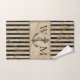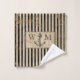 These nautical monogram bathroom towel set features a black and beige striped background with a black anchor in the centre and world map overlay. Personalize the monogram with your own initials. Designed by world renowned artist Tim Coffey.